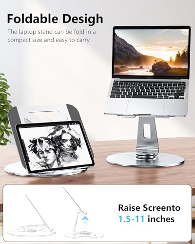360° Rotation: The dual-axis base allows for smooth 360° rotation, enabling you to swivel your laptop to any desired angle effortlessly. Ideal for collaborative work and presentations.